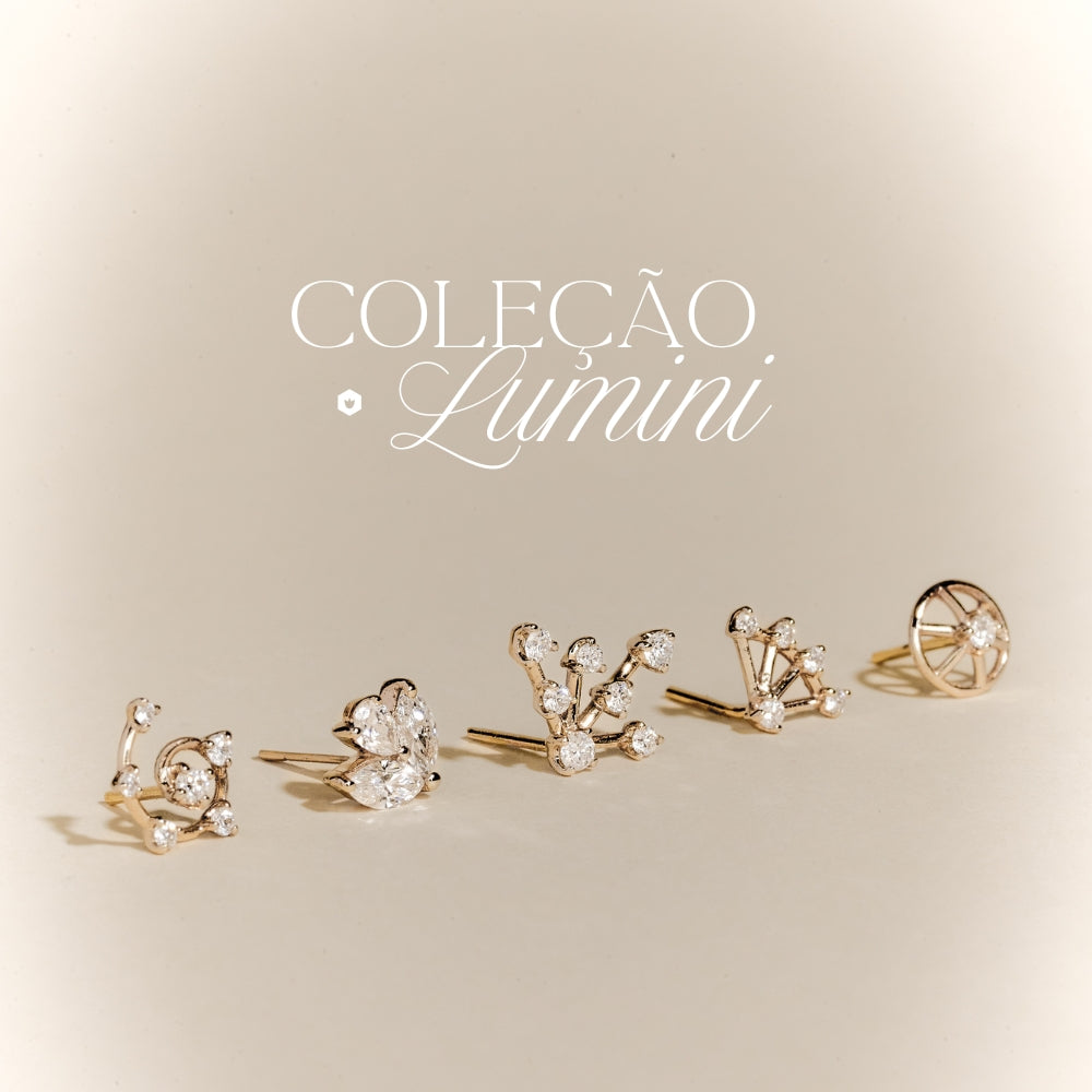 Stud Órbita | Ouro Champanhe e Brilhantes