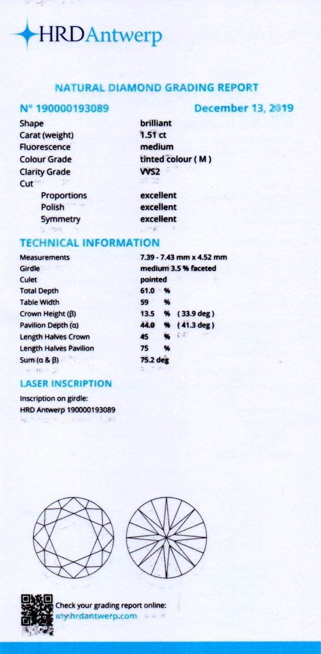 Feito em ouro branco 18K, o Anel Éclat é composto por um diamante em lapidação brilhante de aproximadamente 1.51 quilates.