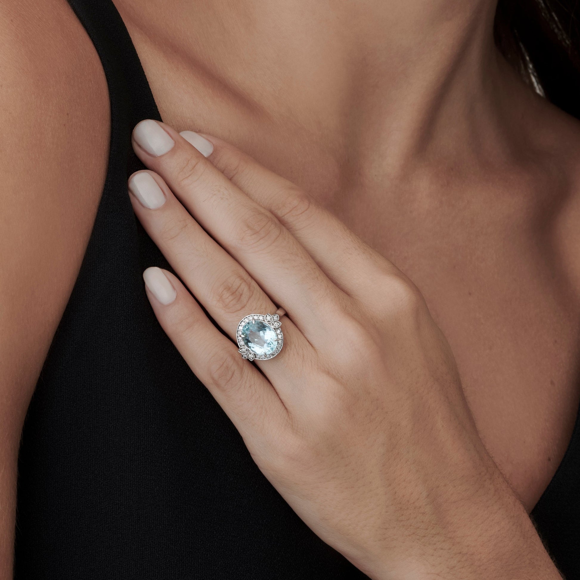 Ouro branco 18K | Água marinha de aproximadamente 4.00 quilates e diamantes somando aproximadamente 0.25 quilate.