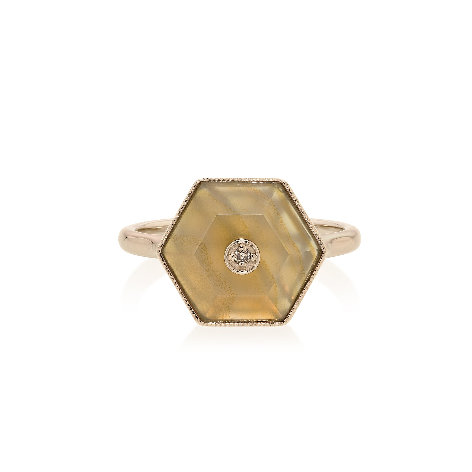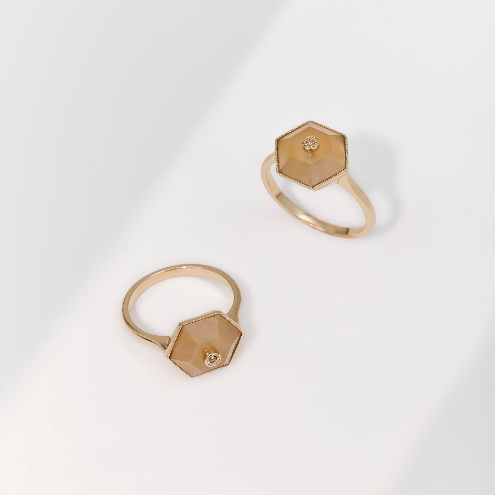 Anel Linea | Ágata, Brilhante e Ouro Champanhe