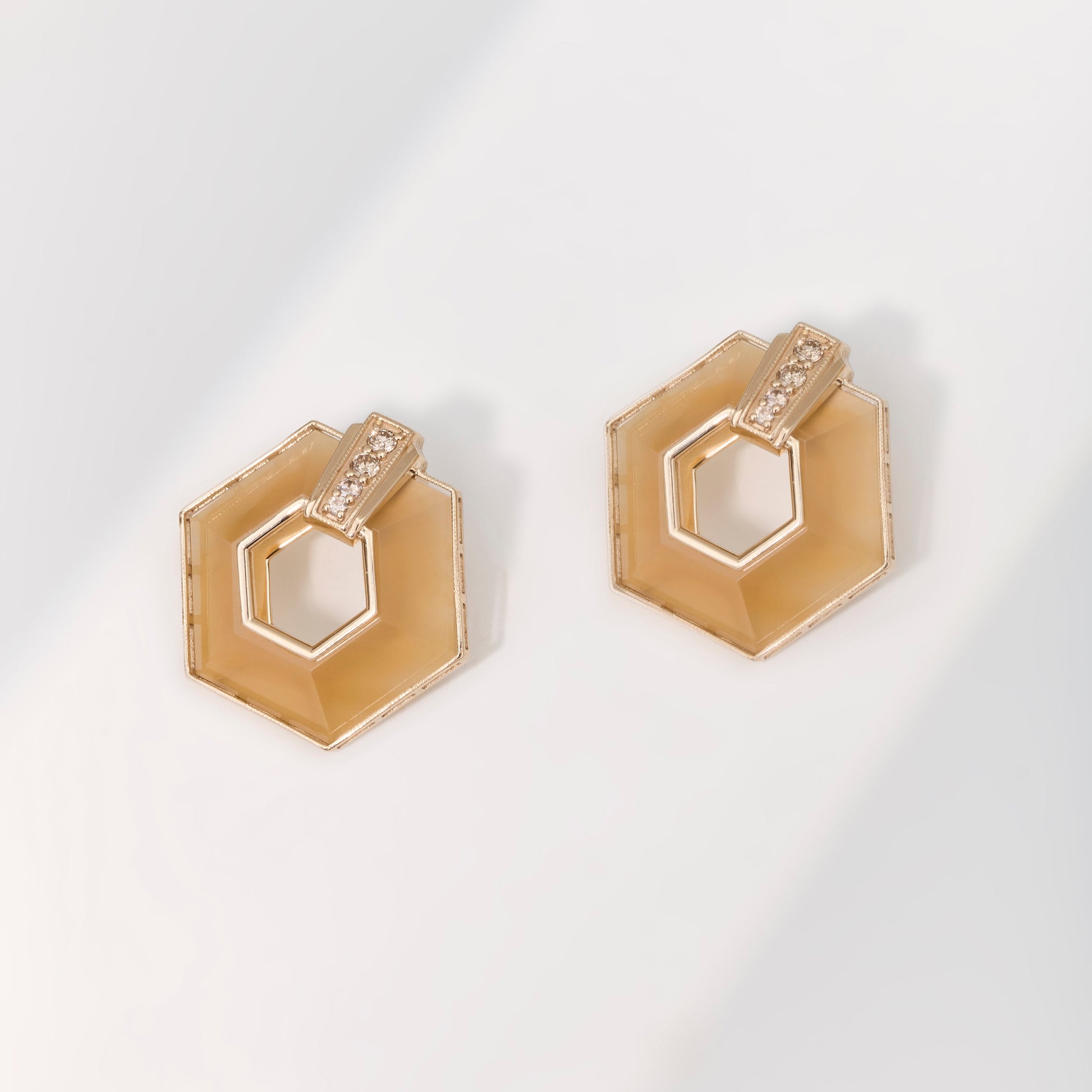 Brinco Finestra | Ágata, Diamantes Brown e Ouro Chamapanhe