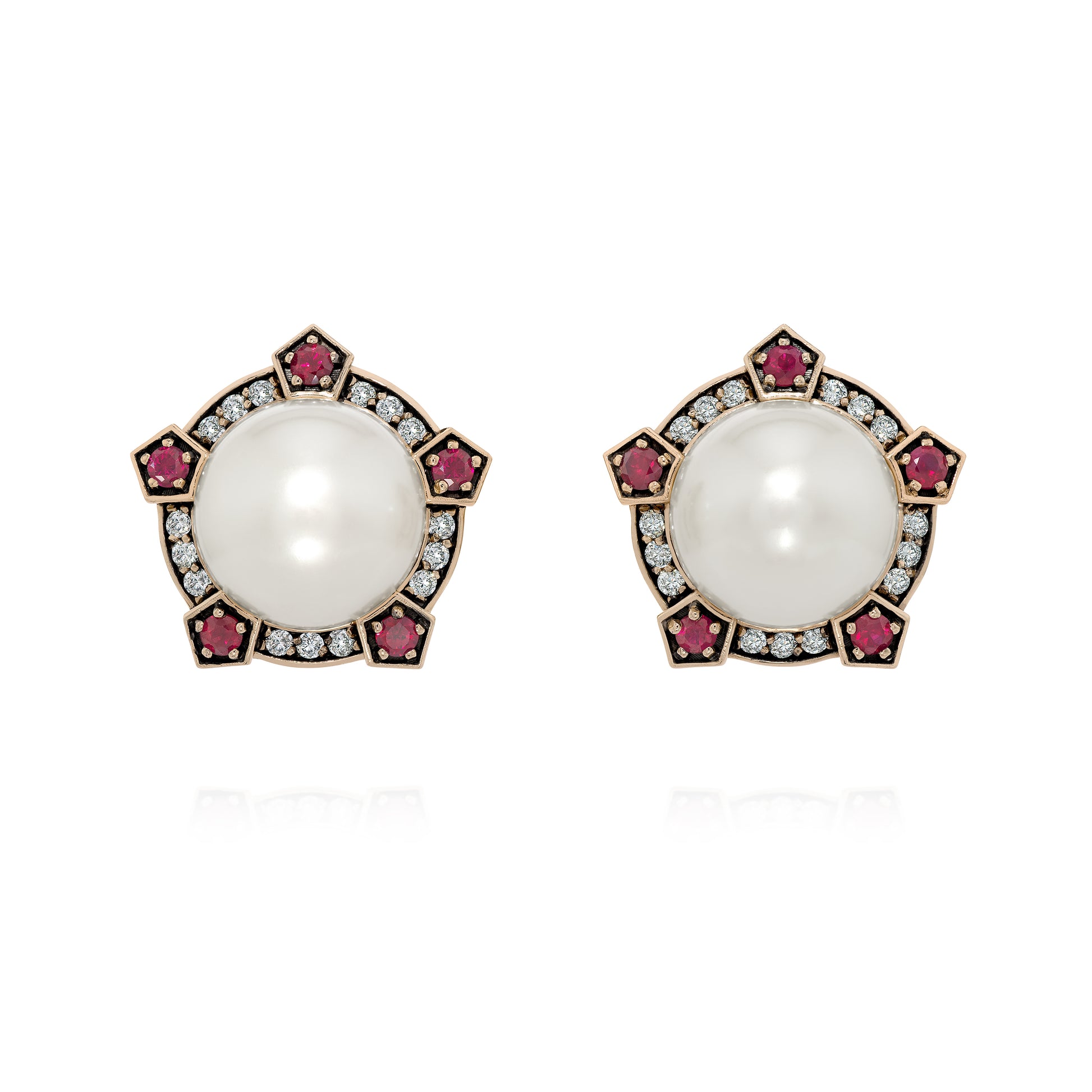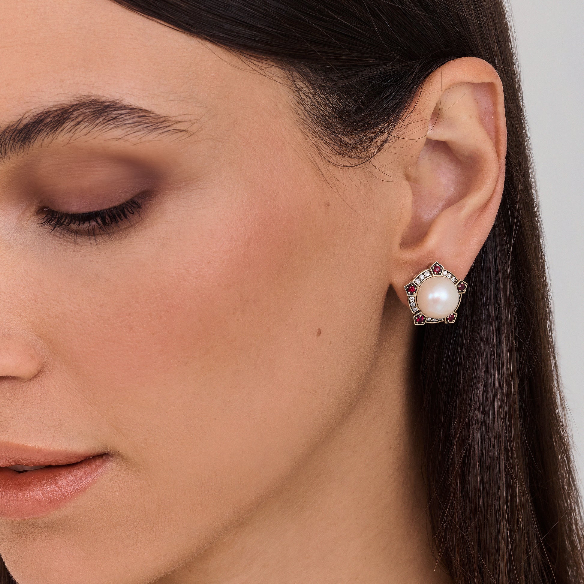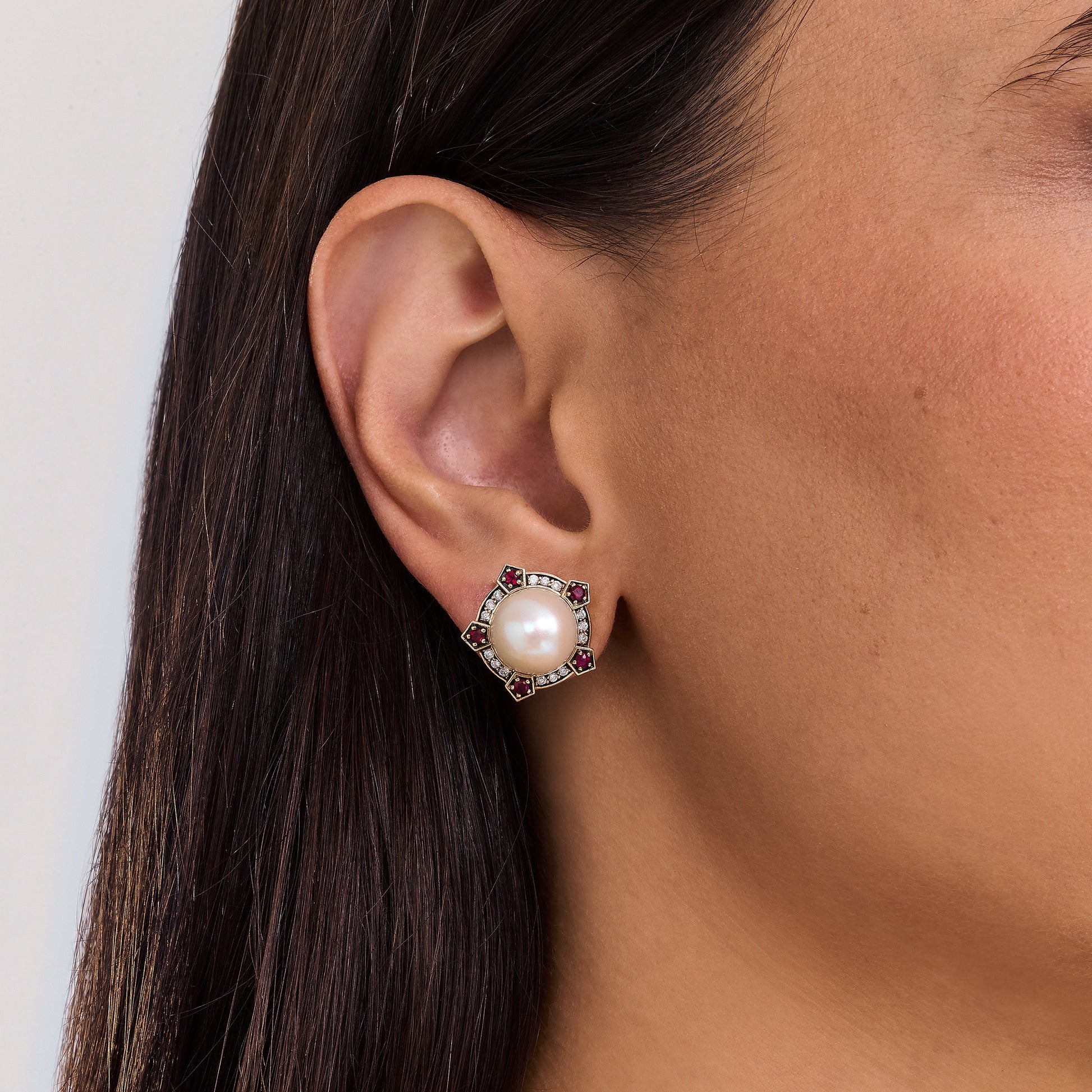 Brinco Lilac | Pérola, Rubi, Brilhantes e Ródio Negro
