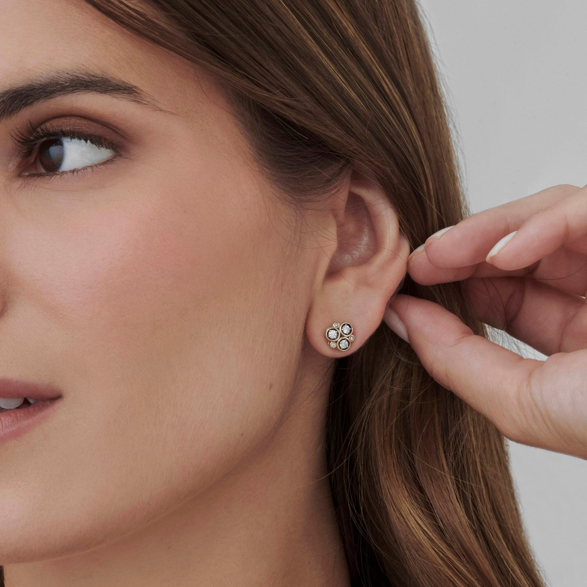 Um brinco discreto e marcante com diamantes e acabamento em ródio negro que garante ainda mais charme e elegância à esta joia ideal para todos os dias.