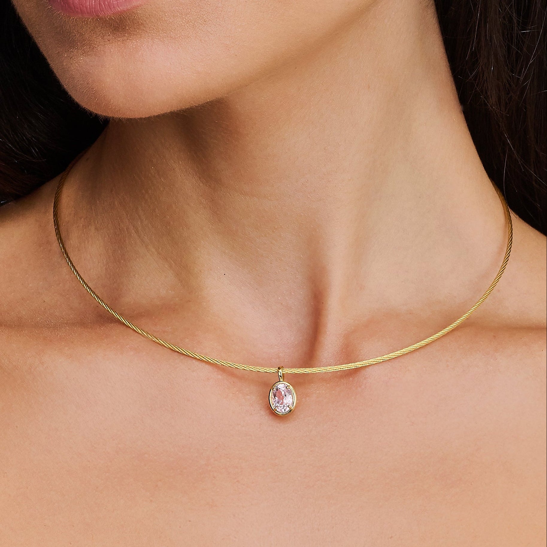 Seu desenho enrijecido cria uma linha pura e circular ao redor do colo, lembrando o trajeto perfeito da luz ao atravessar o dia. Uma joia essencial, que traduz a elegância do movimento contínuo e a harmonia de um ciclo que sempre recomeça.