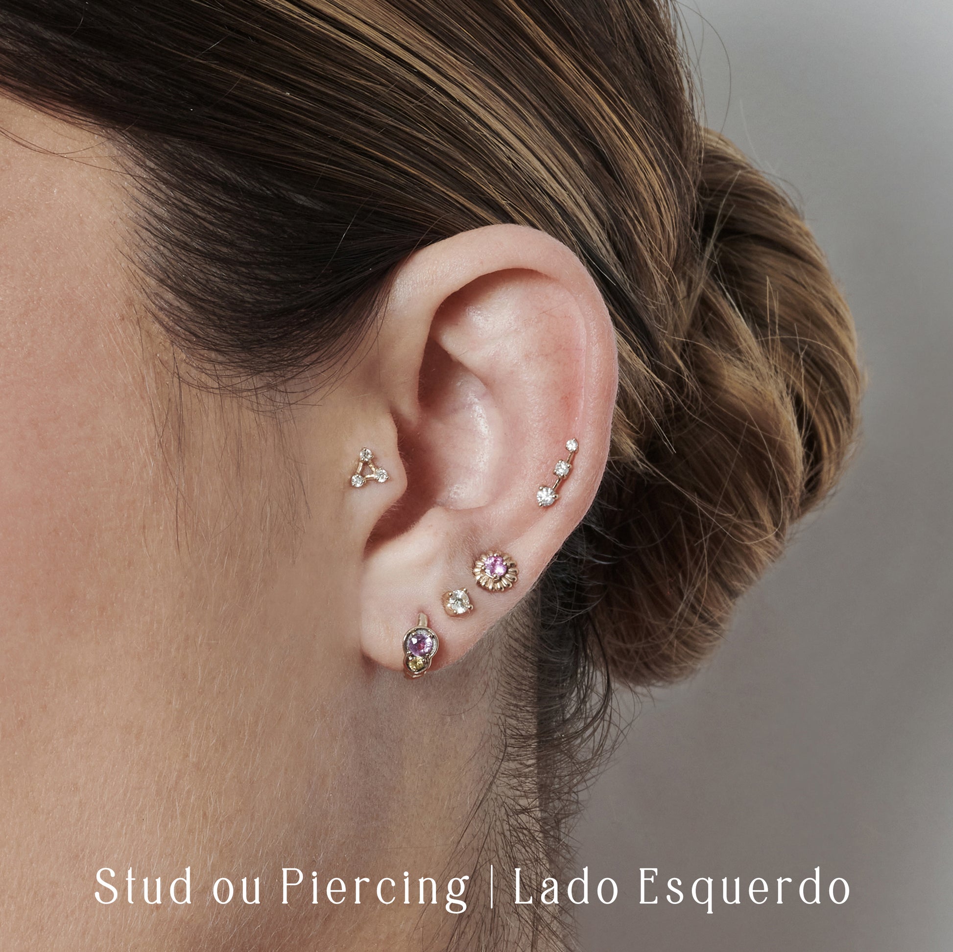 * Opção Stud: Disponibilizamos dois modelos para você escolher se prefere usar na orelha esquerda ou direita, com pino de 0.7mm de espessura e uma tarraxa baby para oferecer melhor conforto.